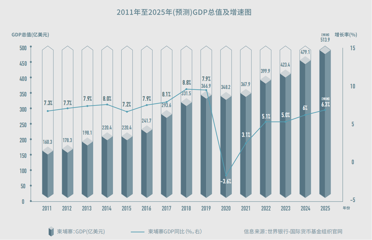 Over the past two decades, Cambodia’s economy has maintained an average growth rate of around 7% (Source: World Bank data), earning it the title of “one of the fastest-growing economies in Southeast Asia.”